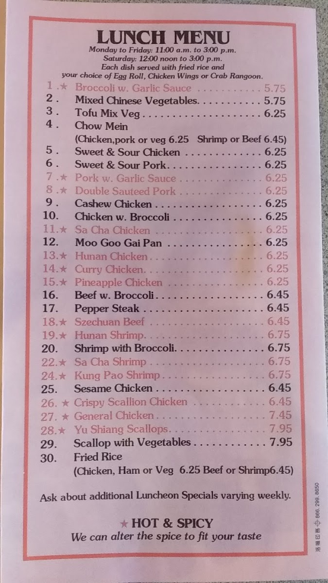 Hunan pork with a choice of fried or steamed rice. Large portion.